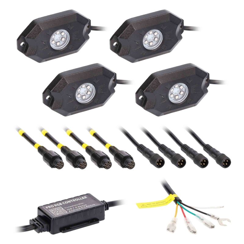 4 Chasing LED Rock Light Kit with Pro Controller 12W