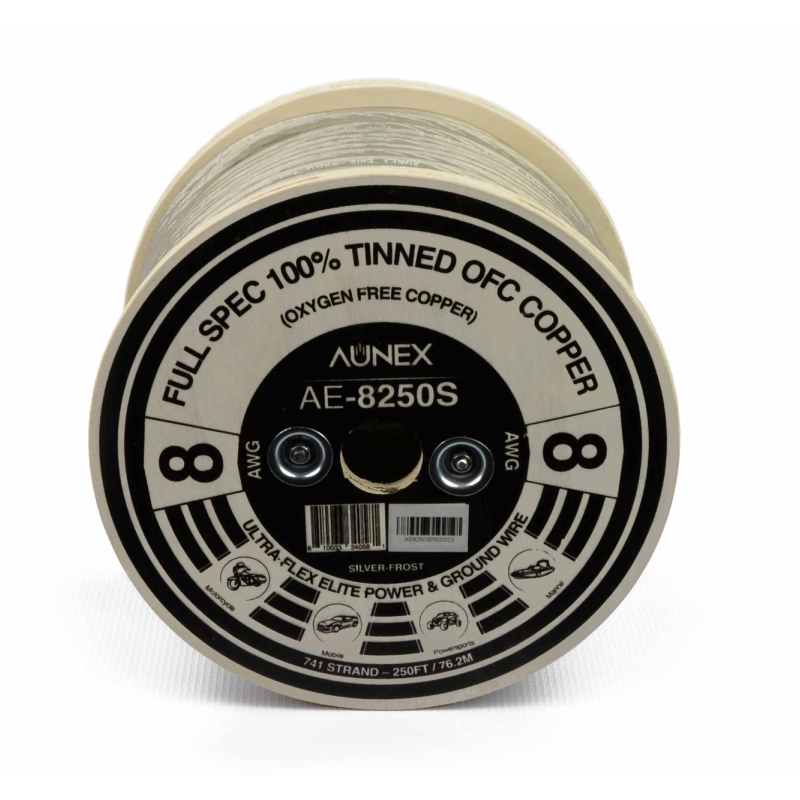 250ft Full Spec 100% Tinned OFC (Oxygen Free) Copper, 8 AWG, Ultra-Flex Elite Power & Ground Wire