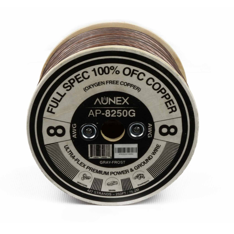 Performance Series 250ft Full Spec 100% OFC (Oxygen Free Copper), 8 AWG, Ultra-Flex Premium Power & Ground Wire - Gray Frost