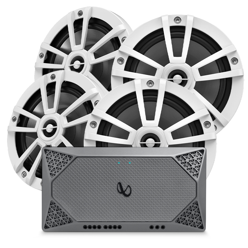 Infinity M704A 4-Channel Marine Amplifier + (2 Pair) Infinity 622MW 6.5" 75W RMS 2-Way Coaxial Marine Speakers (White) Exclusive Bundle