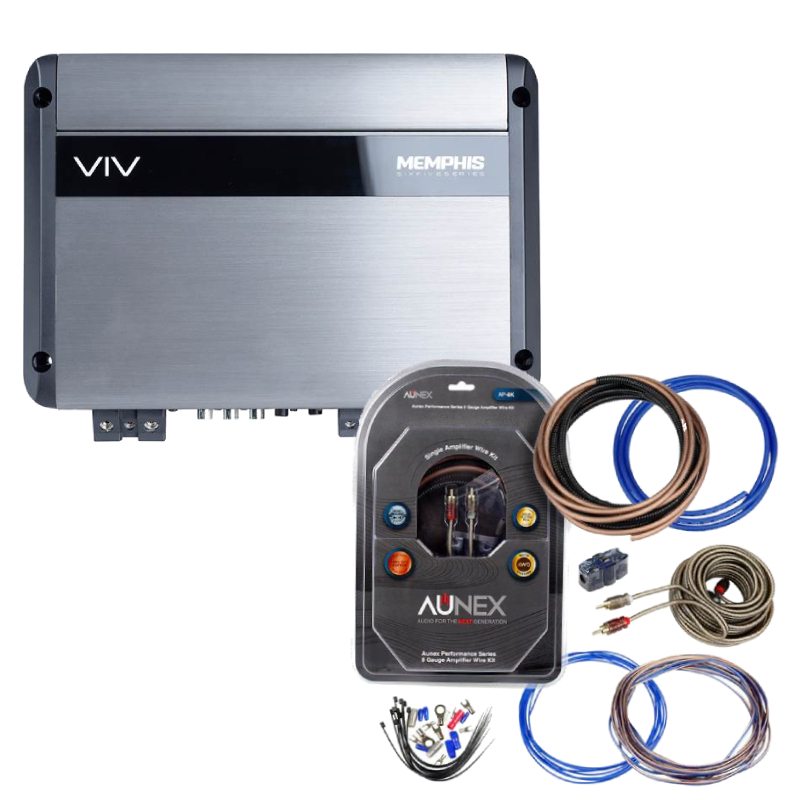 Memphis Audio VIV600.4V2 600W Max Power, 4-channel Car Amplifier, Class-D + Aunex AP-8K 8 Gauge Amplifier Wiring Kit