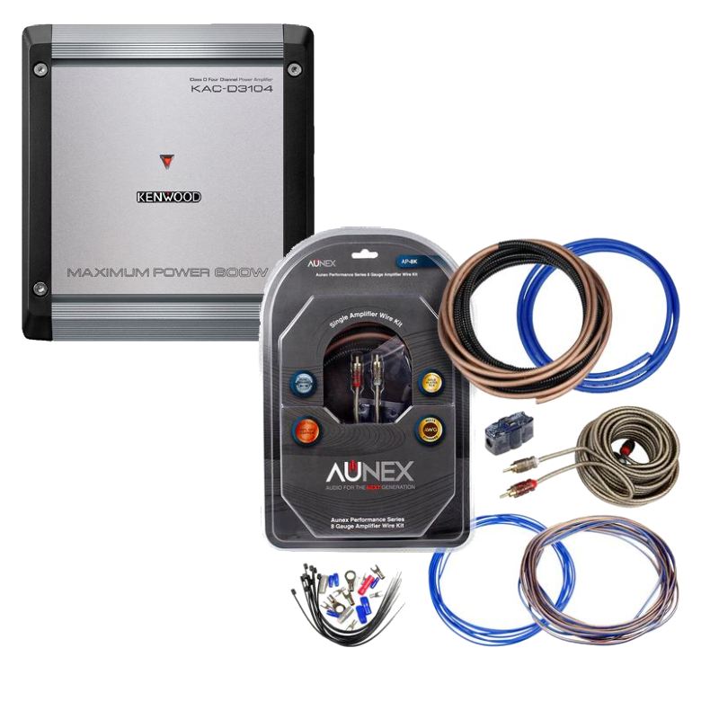 Kenwood KAC-D3104 D Series 75W x 4 RMS @2Ohm, 600W Max Power Class D 4-Channel Power Amplifier + (50% OFF) Aunex AP-8K 8 Gauge Complete Amplifier Wiring Kit Exclusive Amplifier Bundle