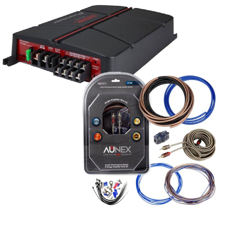Pioneer GM-A4704 A Series 65W RMS x 4 @2Ohms, 520W Max Power Class A/B 4-channels Bridgeable Car Amplifier + (50% OFF) Aunex AP-8K 8 Gauge Complete Amplifier Wiring Kit Exclusive Amplifier Bundle