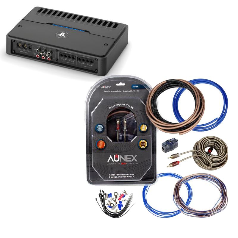 JL Audio RD400/4 100W x 4 @2Ohms, 400W Max Power Class D 4-channel Full-Range Amplifier + Aunex AP-8K 8 Gauge Amplifier Wiring Kit
