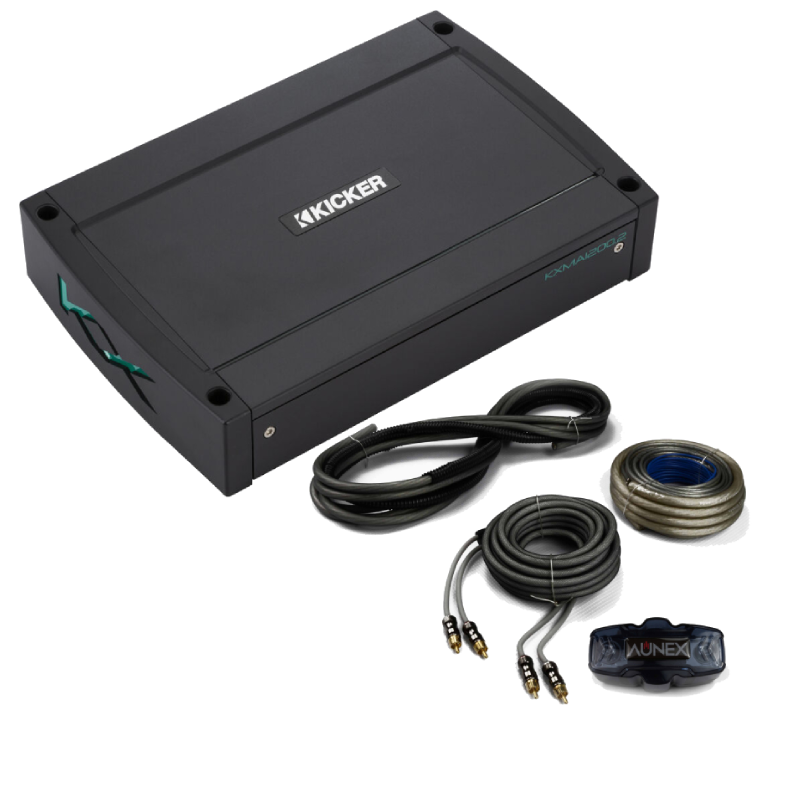 Kicker 48KXMA12002 600Wx2 RMS @2Ohms, 1200W Max Power Class D 2-Channel Full-Range Marine Amplifier + Aunex AE-4K 4 Gauge Premium Amplifier Wiring Kit