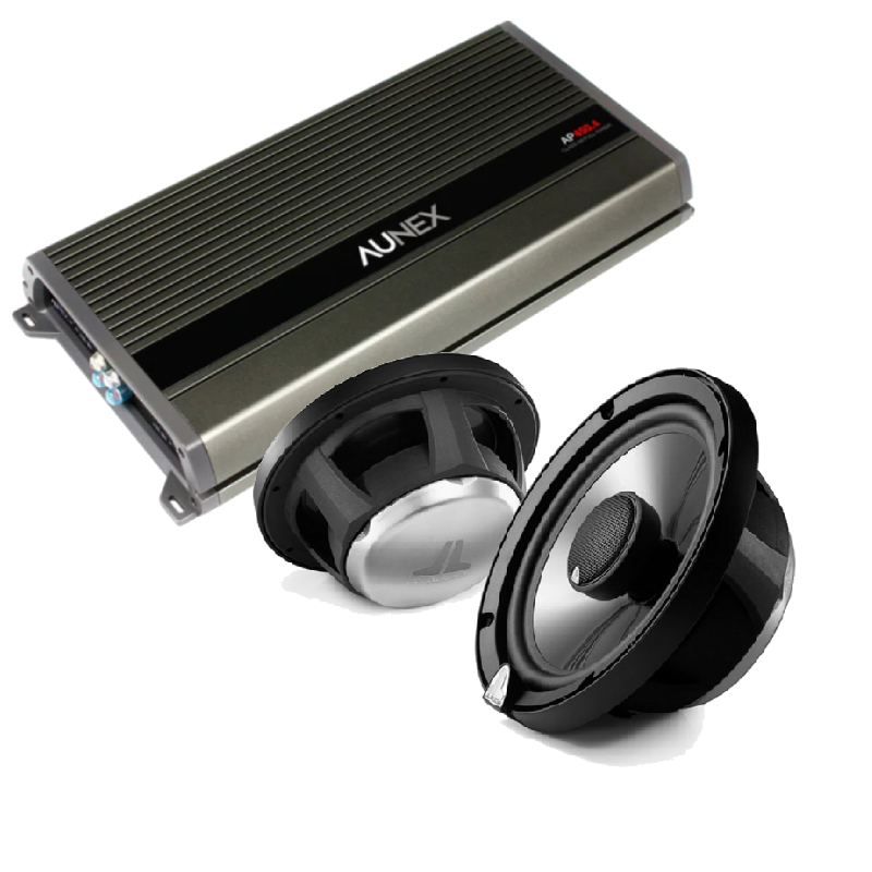 JL Audio C3-650 Evolution 6.5" 150W Peak Power Handling 4 Ohm, Component Speaker System + Aunex AP450.4 700W Max Power Class A/B 4-channel Amplifier