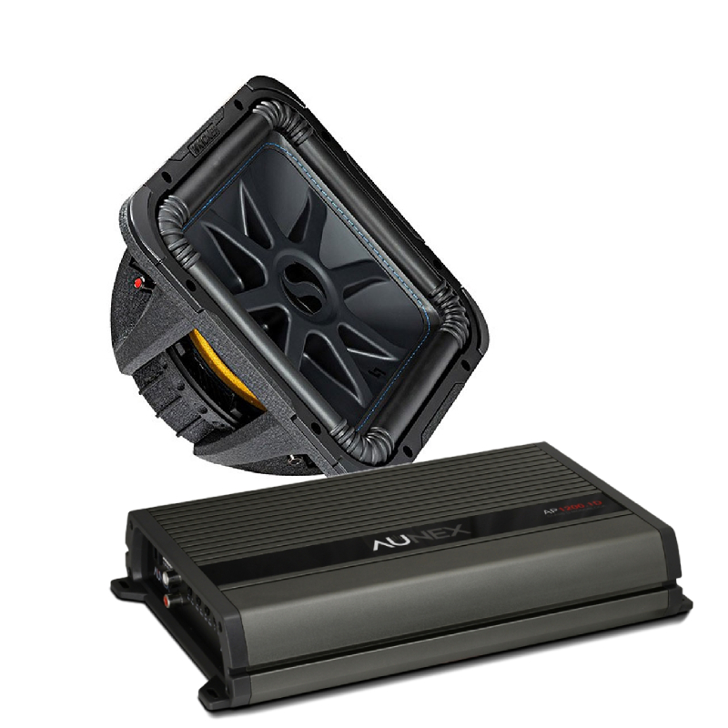 Kicker 44L7S124 12" 1500W Peak Power Dual 4 Ohms Voice Coil Car Subwoofer + Aunex AP1200.1D 900W x 1 @2Ohms, 1200W Max Power Class D Monoblock Amplifier