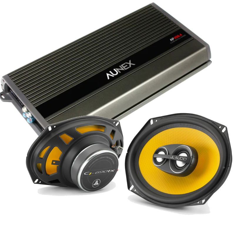 JL Audio C1-690tx C1 Series 6x9" 225W Peak Power Handling 4 Ohms 3-way Coaxial Car Speaker System + (50% OFF) Aunex AP450.4 AP Series 4-Channel 700W Max Power Class A/B Amplifier Exclusive Bundle