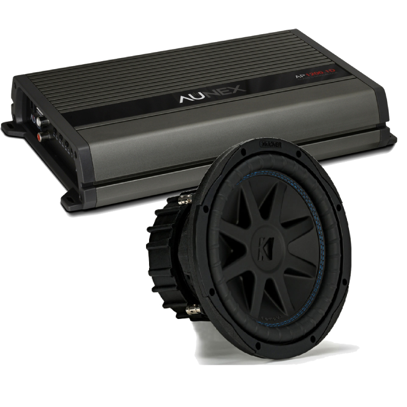 Kicker 44CVX102 10" 1200W Peak Power Dual 2 Ohms Voice Coil Car Subwoofer + Aunex AP1200.1D 900W x 1 @2Ohms, 1200W Max Power Class D Monoblock Amplifier