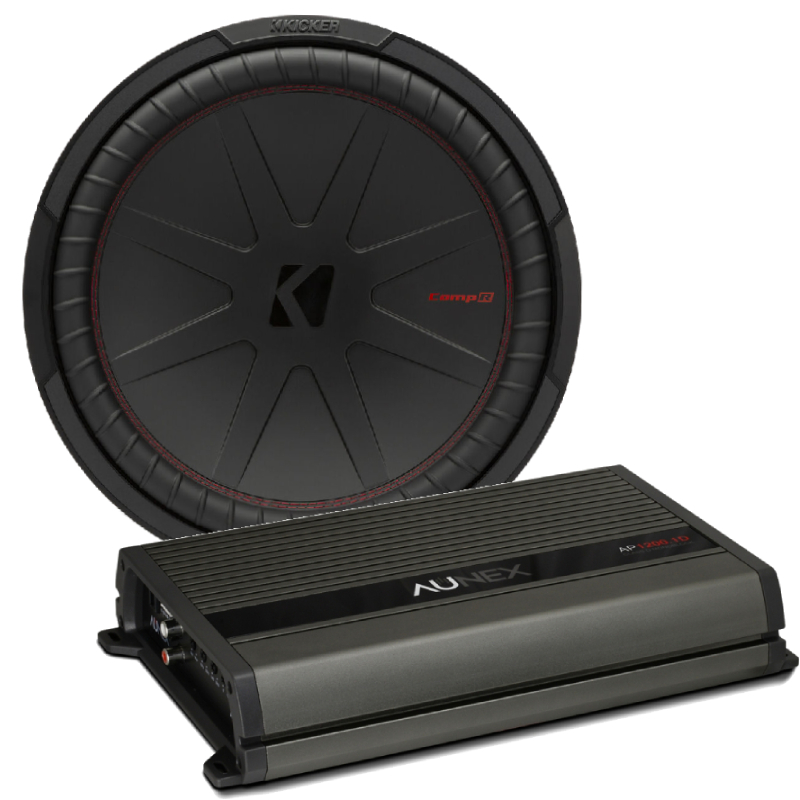 Kicker 48CWR152 15" 1600W Peak Power Dual 2 Ohms Voice Coil Subwoofer + Aunex AP1200.1D 1200W Max Power Class D Monoblock Amplifier