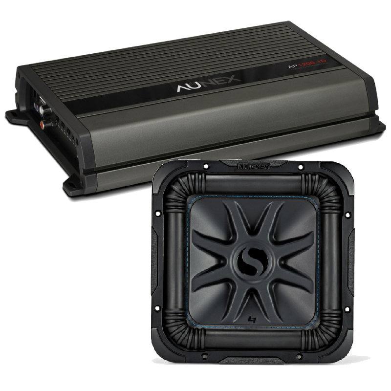 Kicker 44L7S102 10" 1200W Peak Power Dual 2 Ohms Voice Coil Car Subwoofer + Aunex AP1200.1D 900W x 1 RMS @2Ohms, 1200W Max Power Class D Monoblock Amplifier