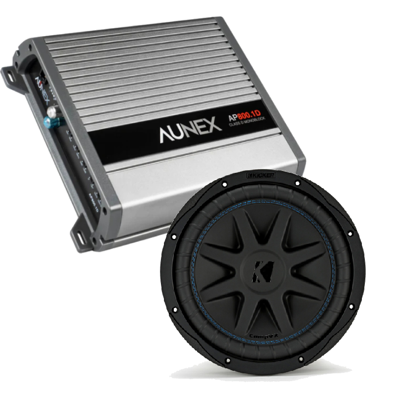 Kicker 44CVX104 10" 1200W Peak Power Dual 4 Ohms Voice Coil Car Subwoofer + Aunex AP800.1D 800W x 1 @4Ohms, 1600W Max Power Class D Monoblock Amplifier