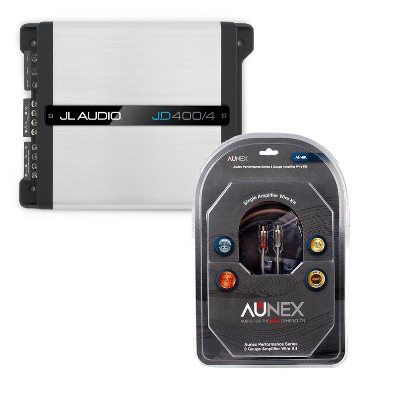 JL Audio JD400/4 400W Max Power Class D 4-Channel Full-Range Amplifier + Aunex AP-8K 8 Gauge Complete Amplifier Wiring Kit