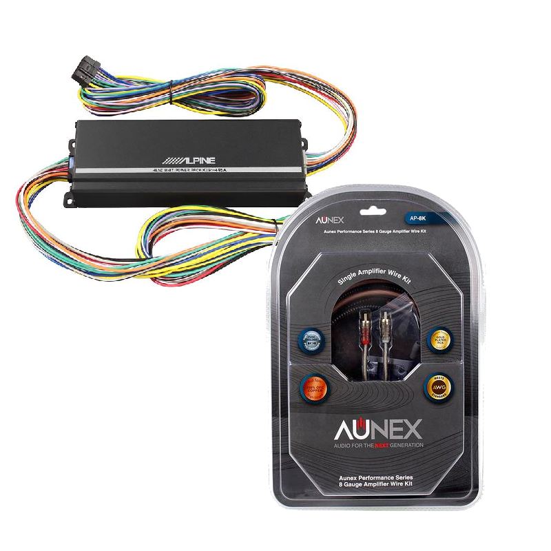Alpine KTP-445A 45W x 4 @4/2Ohms Class D 4-Channel Compact Amplifier + Aunex AP-8K 8 Gauge Amplifier Wiring Kit
