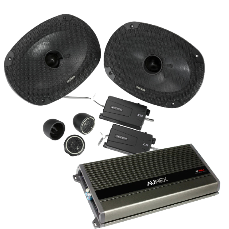 Kicker 46CSS694 6x9" 450W Peak Power 2-way Component Speaker System + Aunex AP450.4 115W x 4 @2Ohms, 700W Max Power Class A/B 4-channel Amplifier