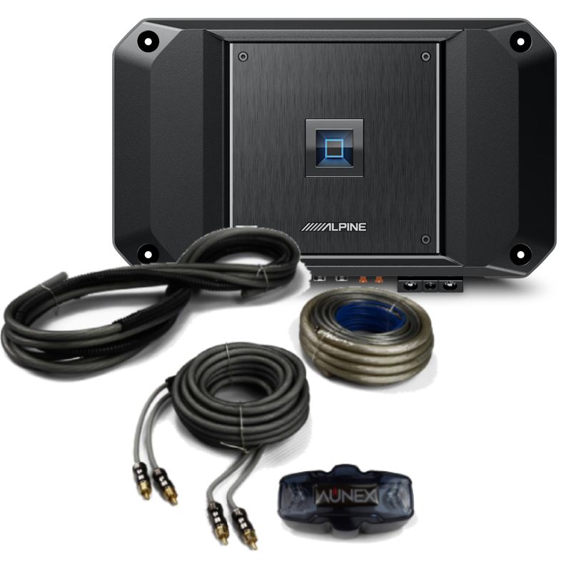 Alpine R2-A75M 750W x 1 RMS @2Ohms, Monoblock Subwoofer Amplifier + Aunex AE-4K 4 Gauge Premium Amplifier Wiring Kit