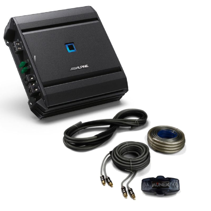 Alpine S2-A60M S-Series 600W RMS x 1 at 2 Ohms, Class-D Mono Power Amplifier + (50% OFF) Aunex AE-4K 4 Gauge Premium Amplifier Wiring Kit