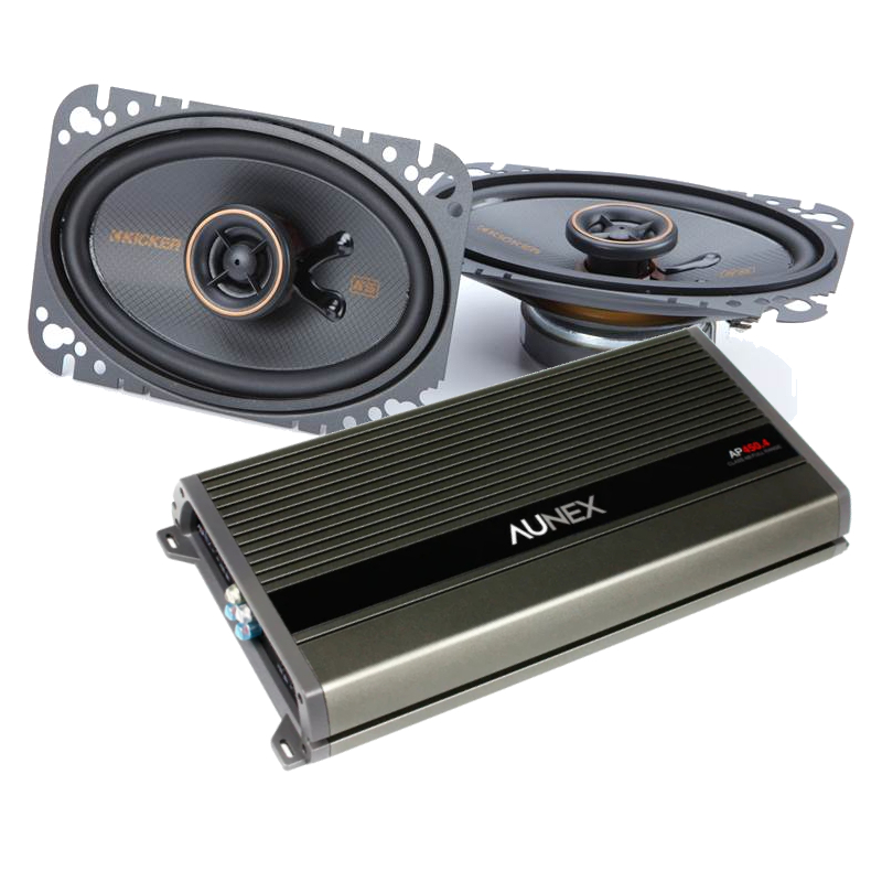 Kicker 47KSC4604 4x6" 75W RMS (150W Peak Power Handling) 2-way Coaxial Speakers + Aunex AP450.4 700W Max Power Class A/B 4-channel Amplifier
