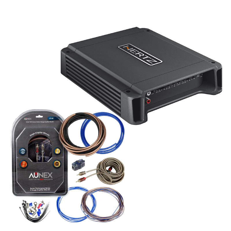 Hertz HCP 1D 500W x 1 @2Ohms, Class-D Monoblock Subwoofer Amplifier + Aunex AP-8K 8 Gauge Amplifier Wiring Kit
