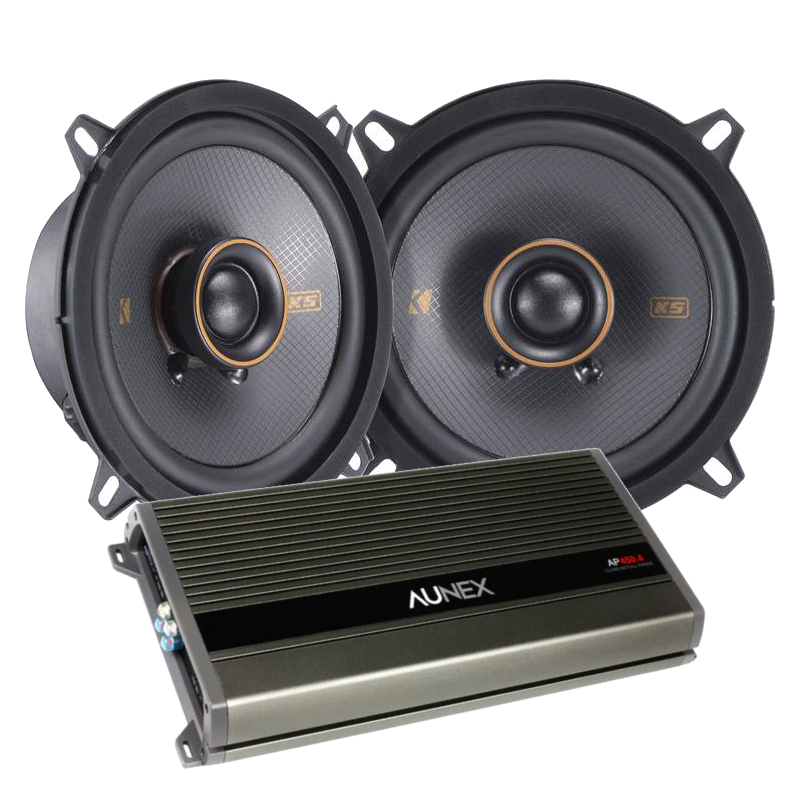 Kicker 47KSC504 5.25" 75W RMS (150W Peak Power Handling) 2-way Coaxial Speakers + Aunex AP450.4 700W Max Power Class A/B 4-channel Amplifier