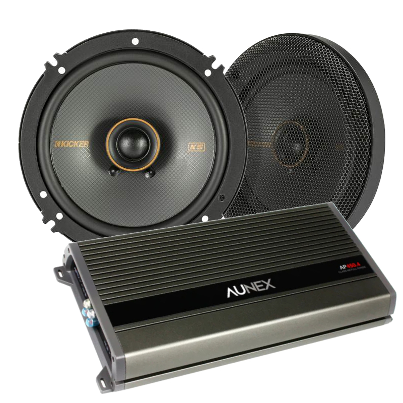 Kicker 47KSC6504 KS Series 6.5" 100W RMS (200W Peak Power Handling) 2-way Coaxial Speakers + (50% OFF) Aunex AP450.4 AP Series 115W x 4 RMS @2Ohms, 700W Max Power Class A/B 4-channel Amplifier Exclusive Bundle