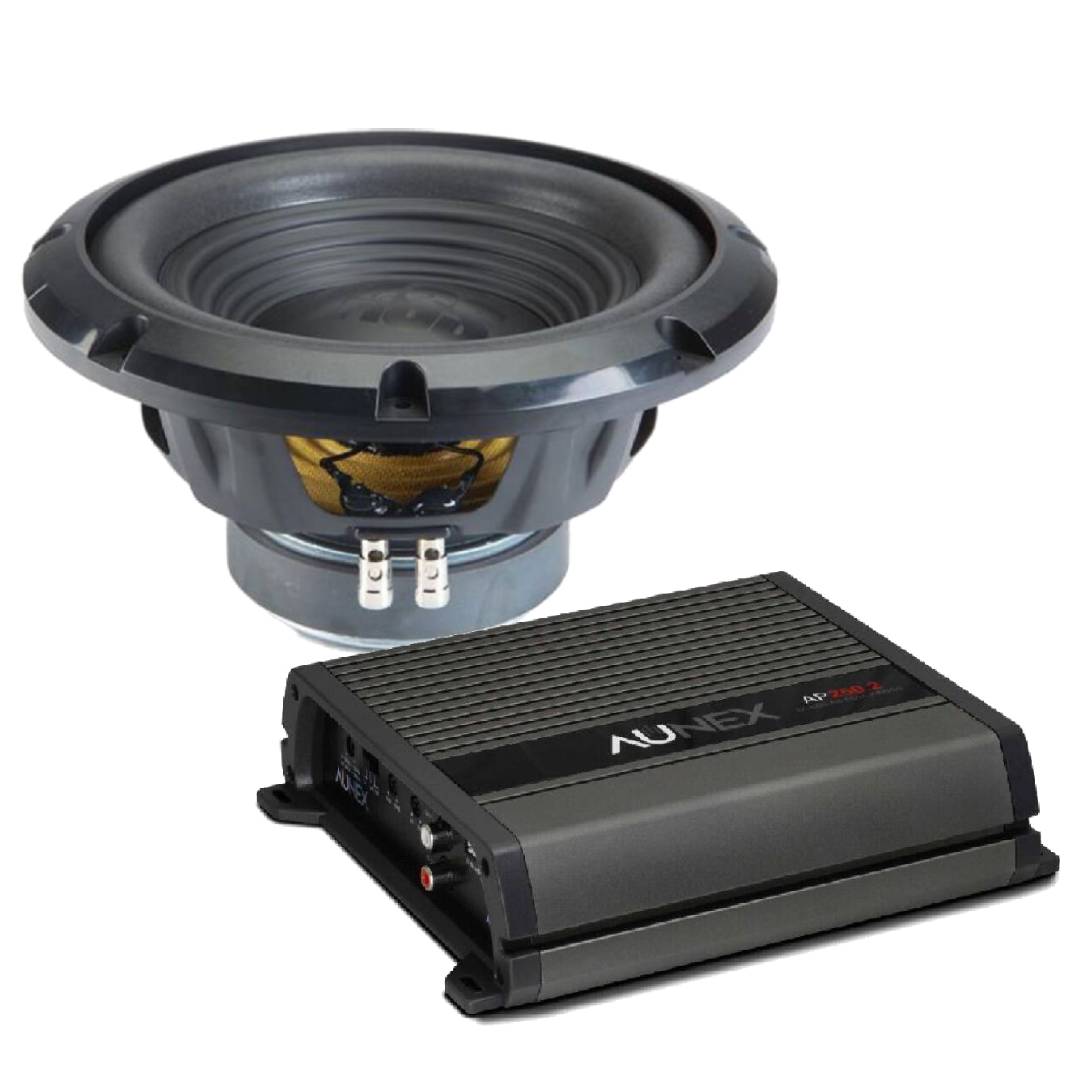 Aunex AP250.2 Class A/B 2-channel Amplifier + Alpine W10S4 10" Single 4 Ohms Voice Coil Car Subwoofer