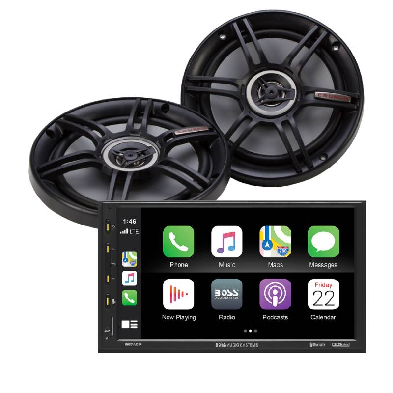 Boss Elite BE7ACP 2-DIN 7" Digital Multimedia Receiver w/ Apple CarPlay, Android Auto + Crunch CS65CXS 6.5" 2-way Shallow Mount Full Range Automotive Speakers