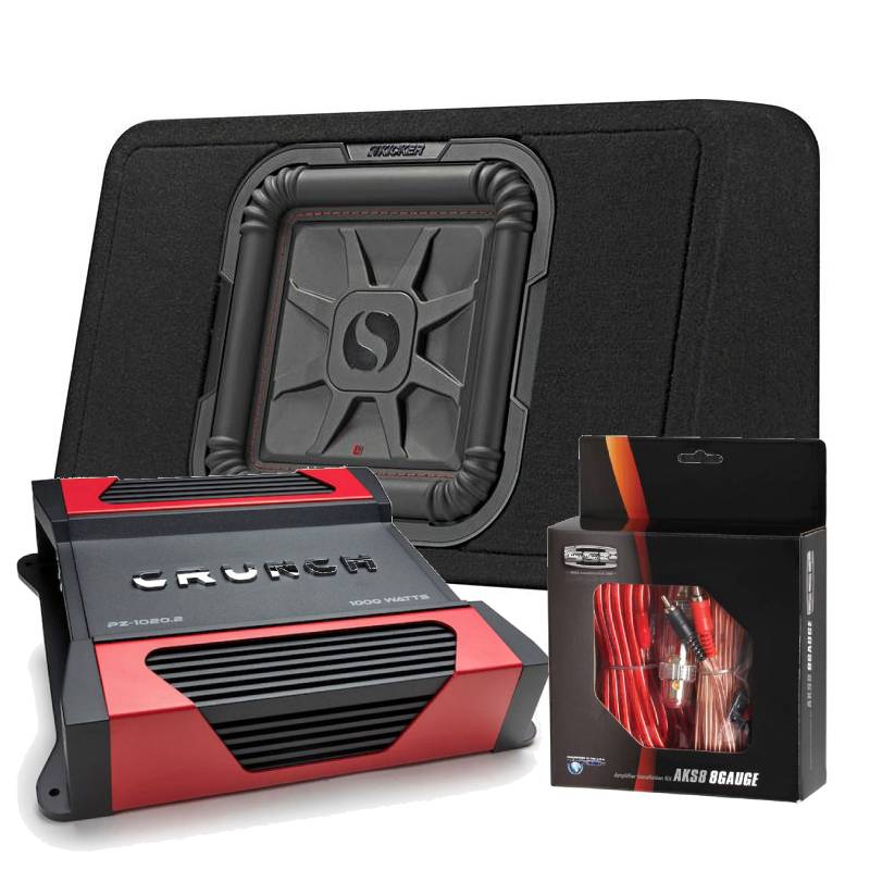 Kicker 46TL7T102-3 Solo-Baric L7T Series 10" 500W RMS Subwoofer + Crunch PZ-1020.2 1100 Watts Max Power Powerzone Series Amplifier + SoundStorm AKS8 Installation Kit