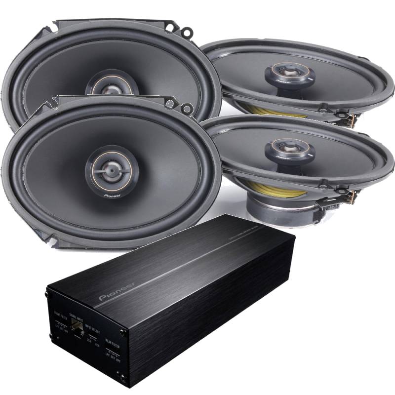 Pioneer GM-D1004 Slim Series 45W RMS x 4 @2Ohms + Amplifier + (2-SETS OF SPEAKERS) Pioneer TS-D68F D Series 6x8" 80W RMS 2-Way Car Coaxial Speakers