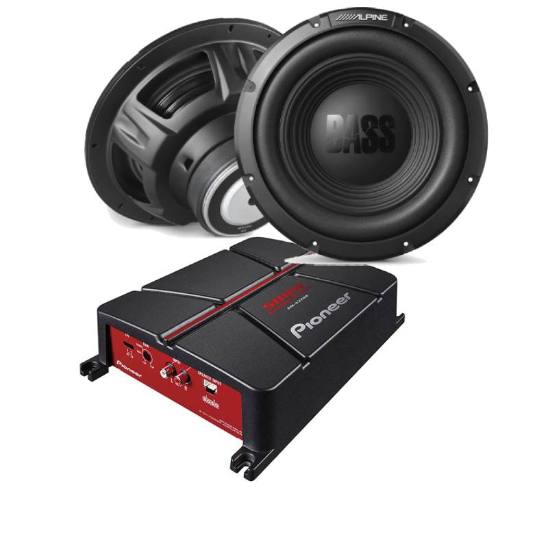 Pioneer GM-A3702 95W RMS x 2 @2 Ohms, 500W Amplifier + Alpine W10S4 BassLine Series 10" 250W RMS Car Subwoofer