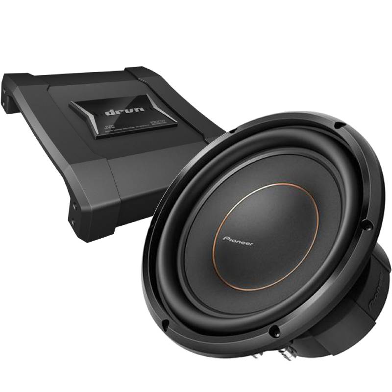 JVC KS-AX5101D 1000W Max Power Digital Class-D Monoblock Amplifier + Pioneer TS-D10D4 10" 1500W Peak Power Handling Dual 4 Ohms Voice Coil Car Subwoofer