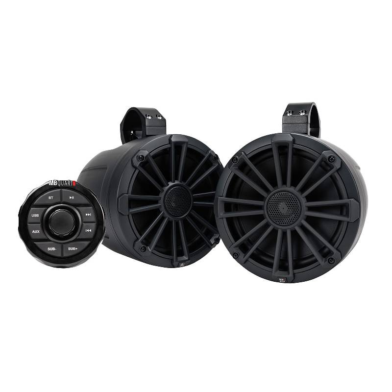 UTV Tuned 2-Speaker 160 Watt Audio System with Bluetooth Source Unit and Roll Cage-Mounted Enclosures for 8" Rear Speakers