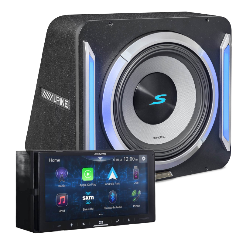 S2-SB12 S-Series 12" 1800W Peak Power Handling Preloaded Wedge Enclosed Subwoofer + ILX-W670 6.75" Double DIN Digital Multimedia Receiver with Bluetooth®, Apple Carplay®, Android Auto™, SiriusXM-Ready®
