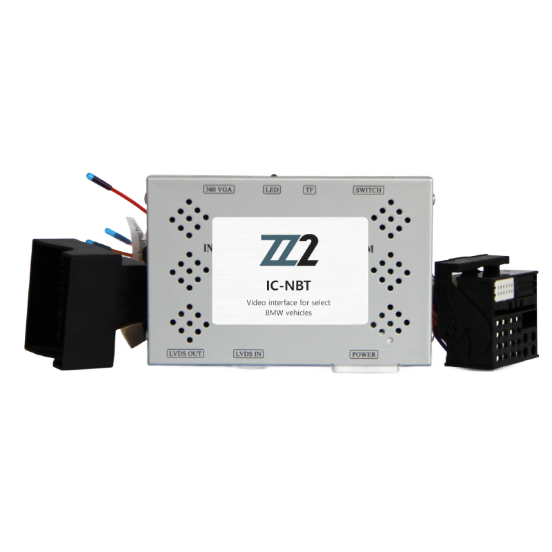 Video Interface for Rear and Front view Cameras for ABMW 1, 3, 5, 6, 7 series and X1, X3, X5, X6, Z4 equipped with OEM dynamic line guides, Plug and play, Automatic switching to rear and front view camera input and MIB-2 system