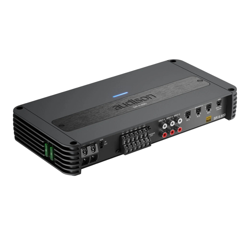 SR Series 6-Channel 140W RMS x 4 at 2-Ohms, 185W RMS x 2 at 2-Ohms, Class-D Car Amplifier