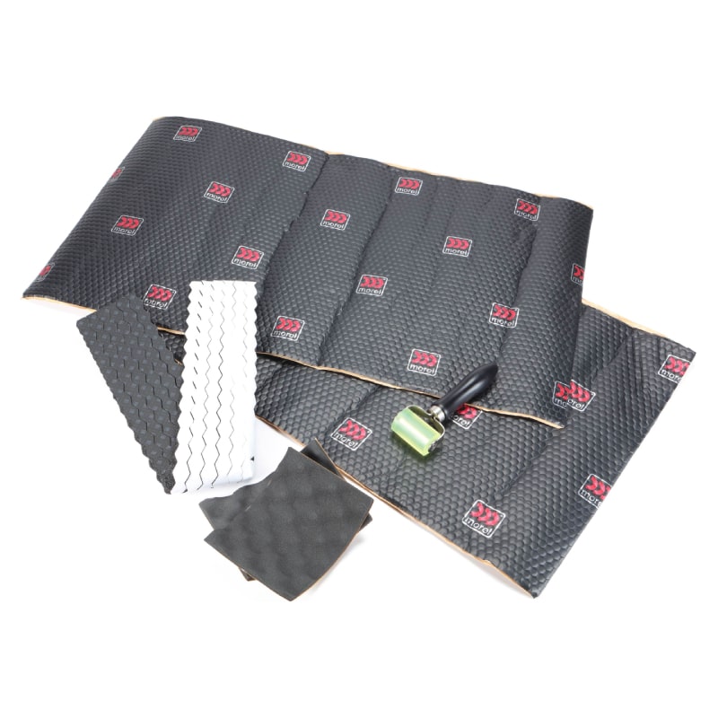 Sound Dampening Package with 2 Acudamp Acoustic Treatment Sheets, 6 Acudamp Speaker Strips, 2 Acudamp Backwave Pads, and Application Roller