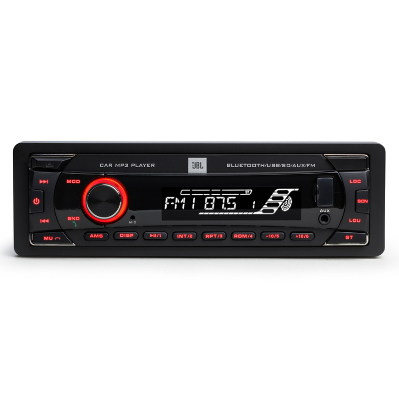 1-DIN Mechless Car Media Receiver with Bluetooth, USB input, Auxiliary input, SD Card, and FM Radio -Ready