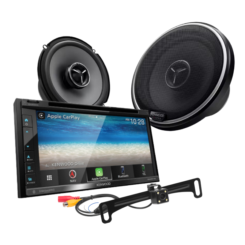 DNX577S 6.8" 2-DIN WVGA Navigation/DVD Receiver with Apple CarPlay, Android Auto, SiriusXM Ready, Bluetooth and Garmin Navigation + KFC-X174 Excelon Series 6.5" 240W Peak Power Handling 4 Ohms 2-Way Coaxial Car Speakers (pair) + ELPC40B Rear-View License Plate Mount Camera with Weather Proof, High-resolution Color, and Wide-angle View