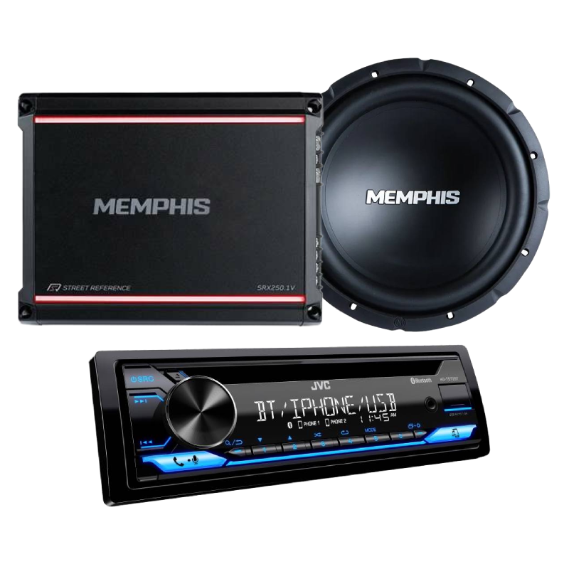 KD-TD72BT 1 DIN VA LCD Display, Bluetooth/USB, 13-Band EQ, CD Receiver + SRX1240 Street Reference Series 12" 500W Peak Power Handling, 4-Ohms Component Subwoofer + SRX250.1V Street Reference Series 500W Peak Power Handling, Monoblock Car Amplifier, Class-A/B