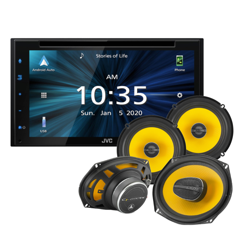 KW-V660BT 6.8" DVD Receiver with Capacitive Touch Monitor, Apple CarPlay, Android Auto, USB Mirroring for Android Phones, Bluetooth®, 13-Band EQ + C1-650x C1 Series 6.5" 225W Peak Power Handling 4 Ohm 2-way Coaxial Car Speakers (pair) + C1-690tx C1 Series 6"x9" 225W Peak Power 4 Ohm, 3-Way Coaxial Car Speakers (pair)