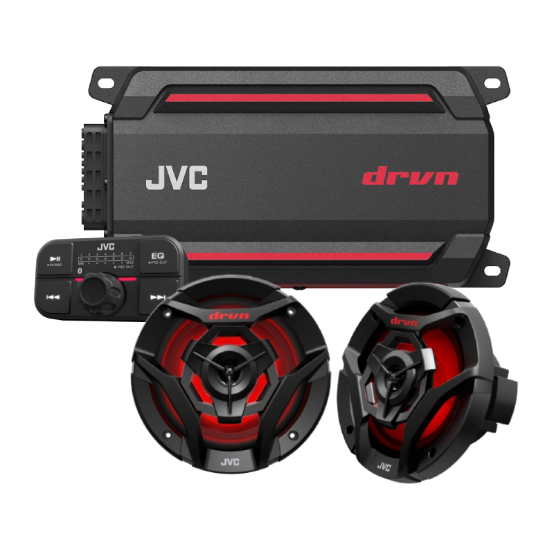 CS-DR620MBL 6.5" 260W Peak Power Handling, 4-Ohms, 2-Way Marine Speakers with built-in LED lights (Black) + KS-DR2104DBT DRVN Series 600W Max Power, 4-Channel Compact Digital Amplifier featuring Bluetooth for Compact Car, Marine, UTV and Motorcycle, Class-D