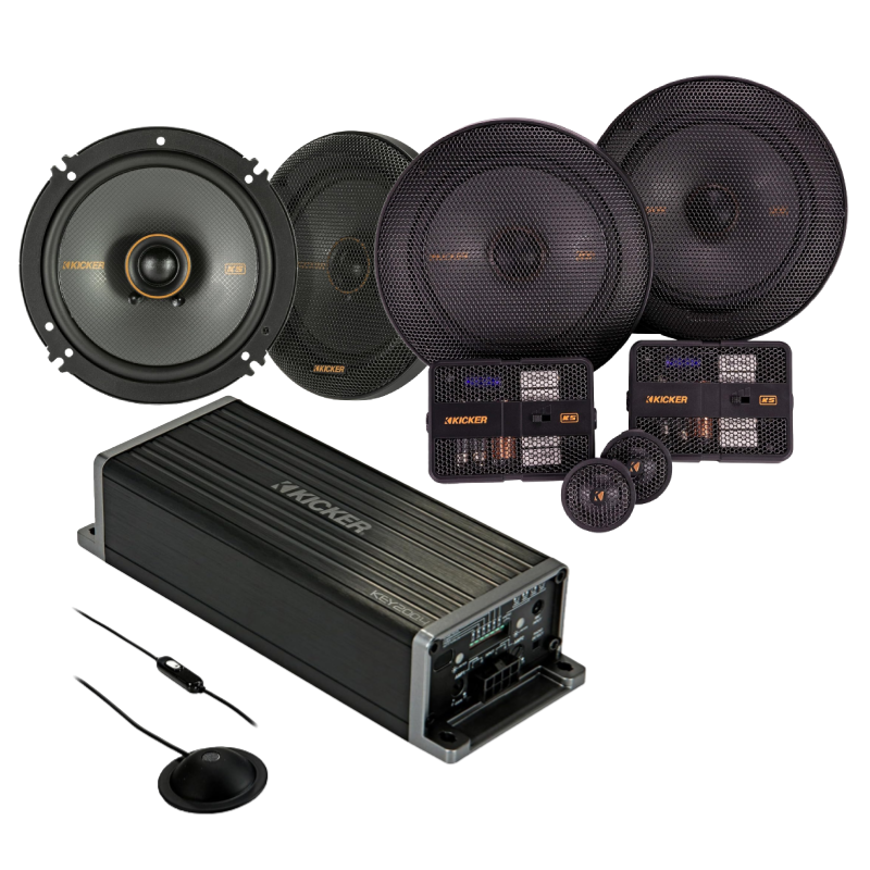 51KSC6504 KS Series 6.5" 200W Peak Power Handling 4 Ohms 2-Way Coaxial Car Speakers (Pair) + 51KSS6504 KS Series 6.5" 250W Peak Power Handling 4 Ohms 2-way Car Component Speaker System + 47KEY2004 KEY Series 50W x 4 @4Ohms, Class D 4-channel DSP Amplifier