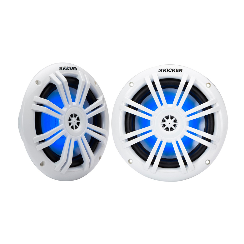 KM Series 6.5" 150W Peak Power Handling 4 Ohm, 2-Way Marine Coaxial Speakers with LED Lights (pair)