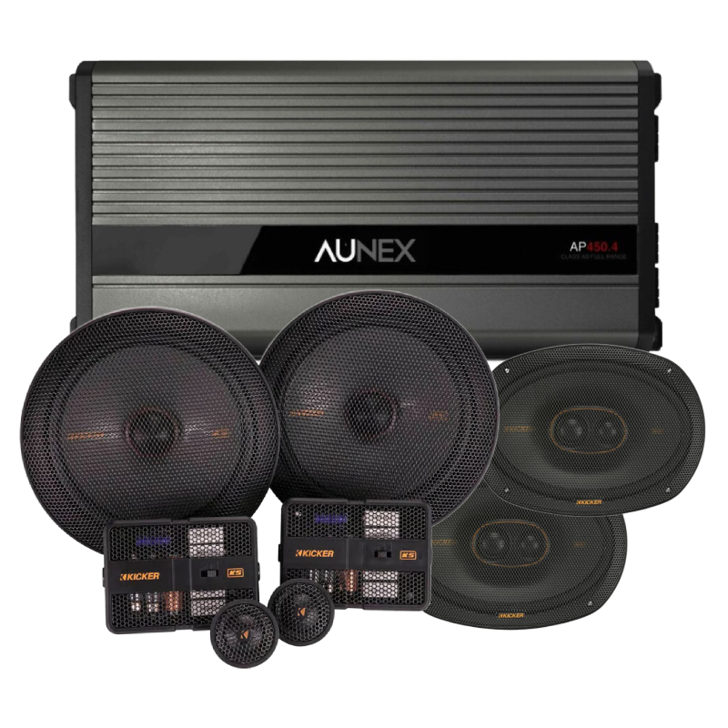 51KSS6504 KS Series 6.5" 250W Peak Power Handling 4 Ohms 2-way Car Component Speaker System + 51KSC69304 KS Series 6"x9" 300W Peak Power Handling 4 Ohms 3-way Coaxial Car Speakers (pair) + AP450.4 AP Series 115W x 4 @2Ohms, 700W Max Power Class A/B 4-channel Amplifier