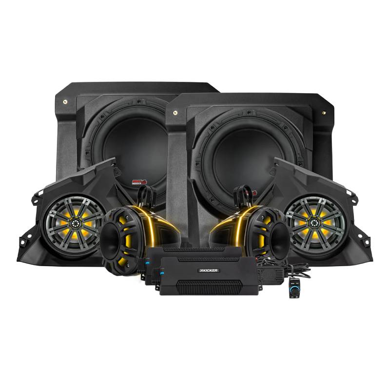 Two 10" Kicker subwoofers Phase-6 K-Spec 1650W 6-Speaker Stereo System with Kicker Horns for 2024-2025 Can-Am® Maverick R