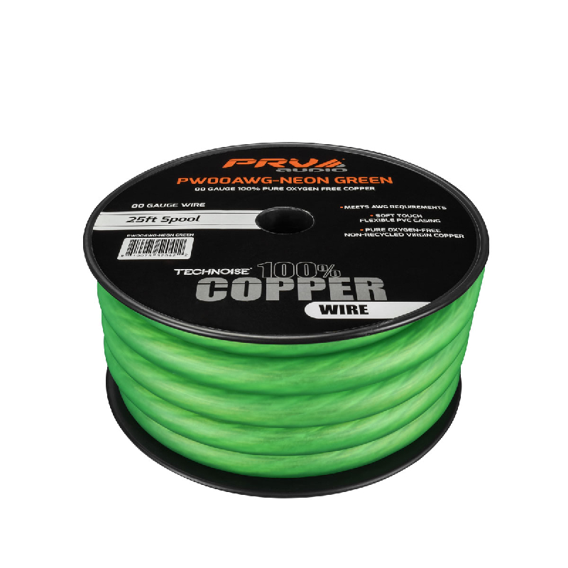 2/0 Gauge Neon Green 100% Pure Oxygen Copper 25ft Roll Power Wire