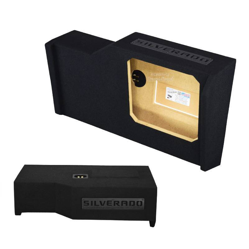 Black 12" Single Sealed Enclosure for 2014-2018 Chevy Silverado & Gmc Sierra Crew Cab (UNDER REAR SEAT BEHIND THE DRIVER'S SIDE)
