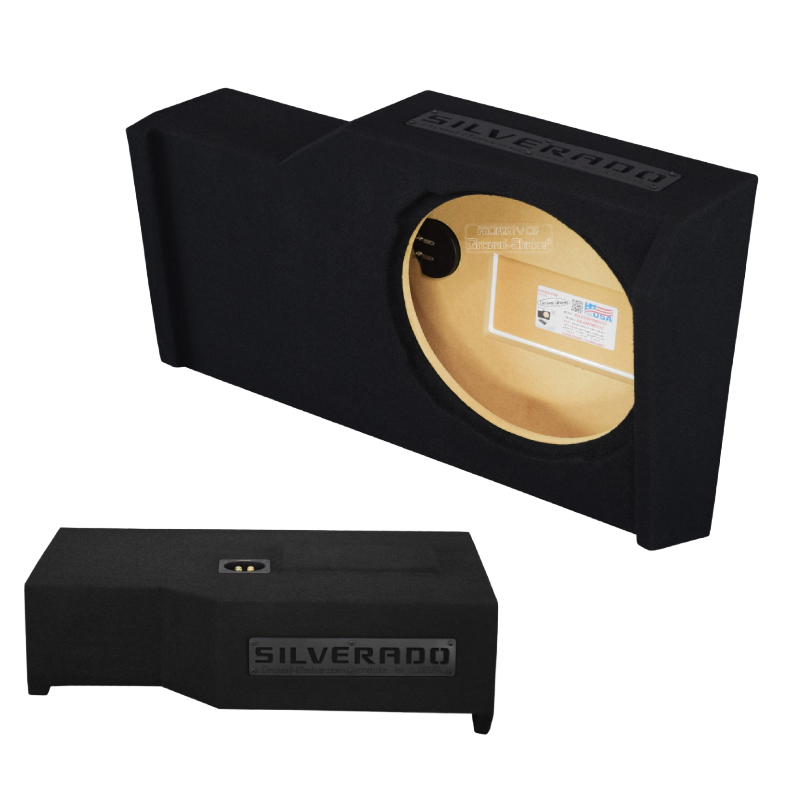 Black 12" Single Sealed Enclosure for 2014-2018 Chevy Silverado Crew-Cab (UNDER REAR SEAT BEHIND THE DRIVER'S SIDE)