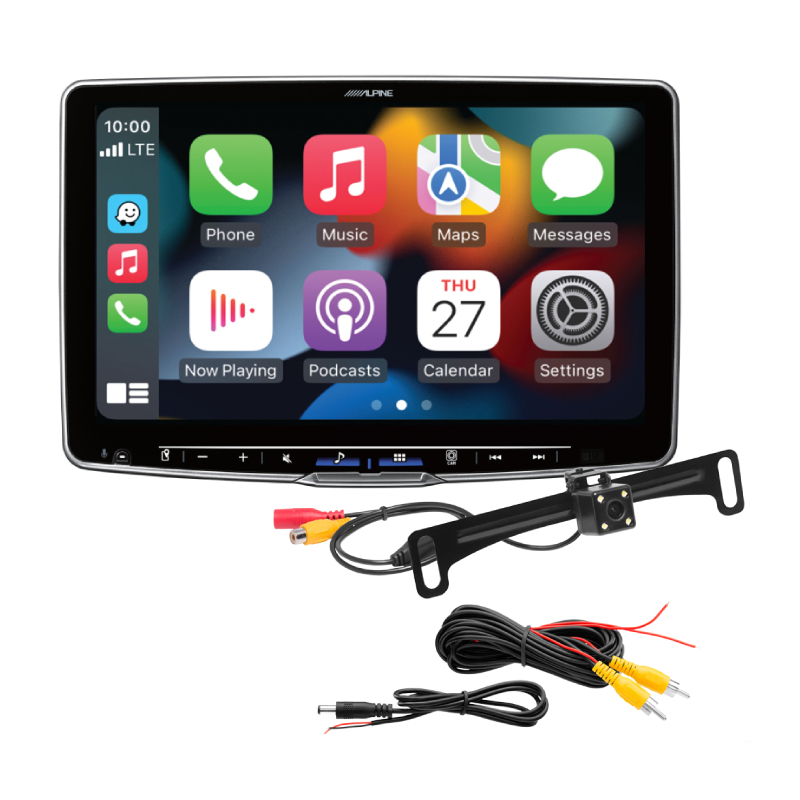 iLX-F511 Halo Series 1-DIN 11" Floating Touchscreen Display Hi-Res Audio Digital Multimedia Receiver with Wireless/Wired Apple CarPlay & Wireless/Wired Android Auto, Built-In Bluetooth® and SiriusXM®-Ready + ELPC40B Rear-View License Plate Mount Camera with Weatherproof, High-Resolution Color, and Wide-Angle View