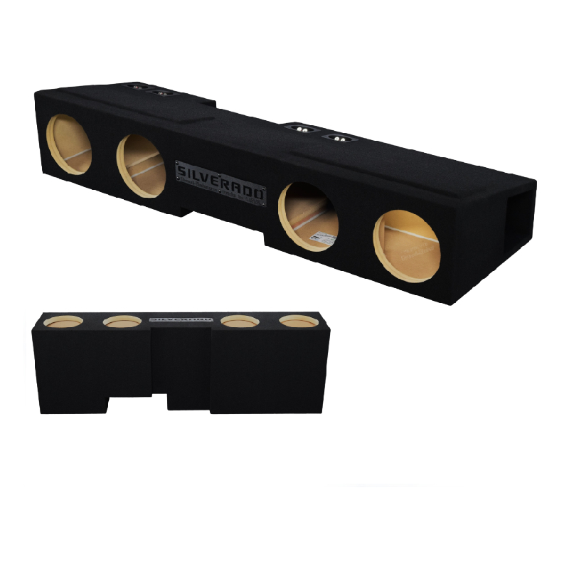 Black 8" Quad Ported Enclosure for 2019-2026 Chevy Silverado Double & Crew-Cab
